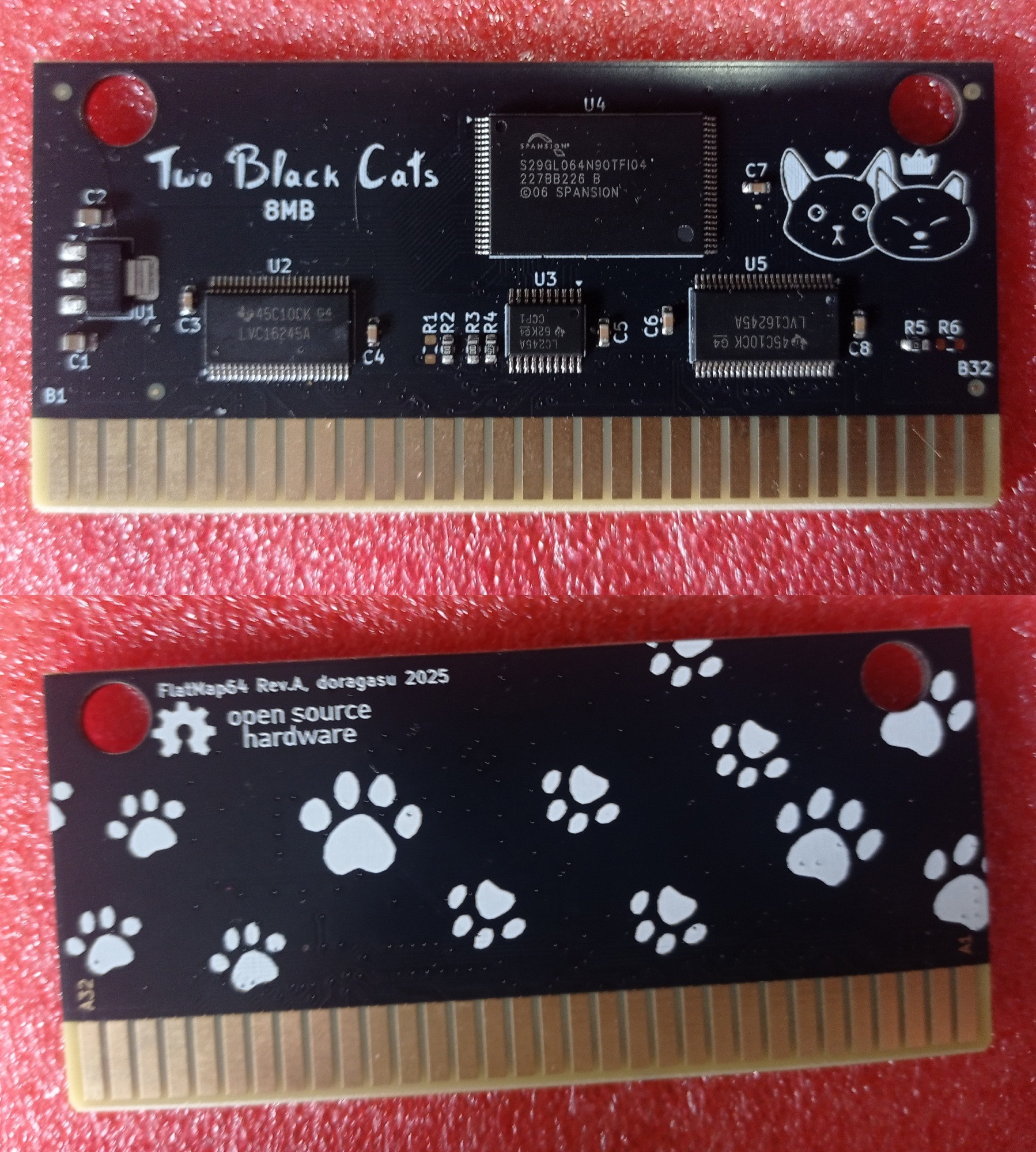 The cart relies on flash memory for saving, as it lacks SRAM or FRAM, MD Engine supports this type of saving outside the box, so there is no extra work needed from developers.